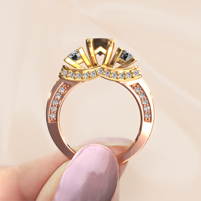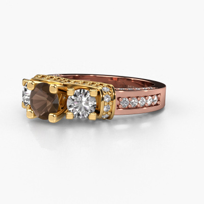 This 14 Carat rose gold ring is called Phileine and is set with 5 mm smokey quartz. This exclusive rose gold 3-stone engagement ring is a true work of art! The ornaments are crafted with a lot of patience and great passion. In order to create this ring with great precision, this craft requires a keen eye and skillful hand. A challenge which ignites a fire in our expert goldsmith. The exquisite smokey quartz are set in a special way so they stand out even more. This gives the ring an even more glamorous appearance. The daring engagement ring is actually unique on its own because of the gemstones which we carefully select especially for this ring. On top of that you select the precious metals which will be used to create a unique ring for the most extraordinary woman in your life! This jewel is made with passion and love by one of our master goldsmiths.After receiving your order, our goldsmiths will passionately start the creative process of making your engagement ring in our own studio. Because we don't have a big stockpile, these costs will not be passed on to you. Our pricing is proof of that! We offer top quality jewels at lowest price, guaranteed.Different styles of new rings are made daily by our team. Perhaps you have found a 3-stone engagement ring somewhere. One you would like to give to your loved one. Please feel free to share your thoughts and design with our jewel designers. We would love to turn your design into a exclusive engagement ring. You can follow the development of your ring design because we use very detailed 3D drawings. On top of that, you can order a dummy of the design. A dummy is a plastic ring, which can be shaped according your ring design. You can try it on and check if the engagement ring is up to standard. We will gladly send you a non-binding offer, based on a fair price/ quality ratio. The offer will baffle you, considering the quality of the ring and gemstones.To make it easier for you, we offer a 30 day return policy. Check our terms and conditions.