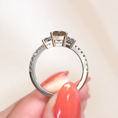 This platinum ring is called Dorla and is set with 1.469 crt brown diamond. What is it that makes your relationship unique? What is it about her that makes you want to bend down on one knee? The unique bond between the two of you is emphasized by an equally unique ring. A one of a kind micro pave 3-stone engagement ring made especially for her. That is why this exclusive ring fits her like a glove. Each specific detail of this micro pave platinum brown diamond set engagement ring is hand-picked, crafted and polished by our expert goldsmith. The result is an exquisite ring, unique and perfectly crafted to perfection. That is what our expert Goldsmiths strive for. This jewel is unique in every way! Simply customize to your liking,After receiving your order, our goldsmiths will passionately start the creative process of making your engagement ring in our own studio. Because we don't have a big stockpile, these costs will not be passed on to you. Our pricing is proof of that! We offer top quality jewels at lowest price, guaranteed.Do you have a specific ring in mind? One you came across somewhere. Please feel free to tell us your wishes and we will turn your design into a unique engagement ring. You can follow the development of your ring design because we use 3D drawings. This gives you a realistic preview of your design. We will gladly send you a non-binding offer, based on a fair price/ quality ratio. It will amaze you.To make it easier for you, we offer a 30 day return policy. Check our terms and conditions.