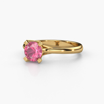 The ring shown above is called the Isa 1. We call this a solitaire ring because it contains a single gemstone. The engagement ring is made in 14 Carat gold and has a round pink sapphire of 5.7 mm. This extraordinary classic gold solitaire engagement ring is set with a beautiful round pink sapphire to add sparkle to your proposal. The open prong setting allows light to strike the gemstone from various angles. Did you know a diamond represents everlasting love and fidelity? This makes it a perfect centerpiece. Our goldsmith carefully positions the gemstone of your choosing high on top of the ring, which makes it stand out. Each piece of jewelry is made just for you by our master goldsmiths in our own studio.By using a combination of the latest modern techniques, combined with ancient crafting, we can make all our engagement rings in our own studio. Each jewel is made to order. This is advantageous because we can offer you a price you won't find anywhere else.Do you have a specific ring in mind? One you came across somewhere. Please feel free to tell us your wishes and we will turn your design into a unique engagement ring. You can follow the development of your ring design because we use 3D drawings. This gives you a realistic preview of your design. We will gladly send you a non-binding offer, based on a fair price/ quality ratio. It will amaze you.To make it easier for you, we offer a 30 day return policy. Check our terms and conditions.