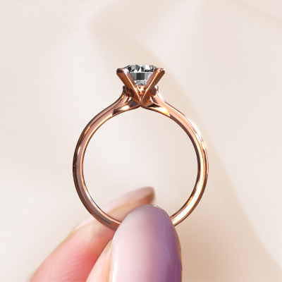 The ring shown above is called the Isa 1. We call this a solitaire ring because it contains a single gemstone. The engagement ring is made in 14 Carat rose gold and has a round diamond of 1.00 crt. This extraordinary classic rose gold solitaire engagement ring is set with a beautiful round diamond to add sparkle to your proposal. The open prong setting allows light to strike the gemstone from various angles. Did you know a diamond represents everlasting love and fidelity? This makes it a perfect centerpiece. Our goldsmith carefully positions the gemstone of your choosing high on top of the ring, which makes it stand out. Each piece of jewelry is made just for you by our master goldsmiths in our own studio.By using a combination of the latest modern techniques, combined with ancient crafting, we can make all our engagement rings in our own studio. Each jewel is made to order. This is advantageous because we can offer you a price you won't find anywhere else.Do you have a specific ring in mind? One you came across somewhere. Please feel free to tell us your wishes and we will turn your design into a unique engagement ring. You can follow the development of your ring design because we use 3D drawings. This gives you a realistic preview of your design. We will gladly send you a non-binding offer, based on a fair price/ quality ratio. It will amaze you.To make it easier for you, we offer a 30 day return policy. Check our terms and conditions.