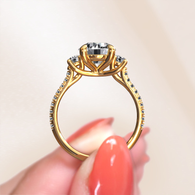 This 14 Carat gold ring is called Jesica and is set with 2.38 crt diamond. What is it that makes your relationship unique? What is it about her that makes you want to bend down on one knee? The unique bond between the two of you is emphasized by an equally unique ring. A one of a kind graceful 3-stone engagement ring made especially for her. That is why this classic ring fits her like a glove. Each specific detail of this graceful gold diamond set engagement ring is hand-picked, crafted and polished by our expert goldsmith. The result is an exquisite ring, unique and perfectly crafted to perfection. That is what our expert Goldsmiths strive for. This jewel is made just for you, with attention to detail and design.After receiving your order, our goldsmiths will passionately start the creative process of making your engagement ring in our own studio. Because we don't have a big stockpile, these costs will not be passed on to you. Our pricing is proof of that! We offer top quality jewels at lowest price, guaranteed.Different styles of new rings are made daily by our team. Perhaps you have found a 3-stone engagement ring somewhere. One you would like to give to your loved one. Please feel free to share your thoughts and design with our jewel designers. We would love to turn your design into a classic engagement ring. You can follow the development of your ring design because we use very detailed 3D drawings. On top of that, you can order a dummy of the design. A dummy is a plastic ring, which can be shaped according your ring design. You can try it on and check if the engagement ring is up to standard. We will gladly send you a non-binding offer, based on a fair price/ quality ratio. The offer will baffle you, considering the quality of the ring and gemstones.To make it easier for you, we offer a 30 day return policy. Check our terms and conditions.