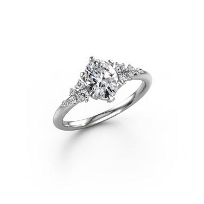 The ring shown above is called the Royce OVL. We call this type of ring a pavé solitaire ring because it has one center gemstone and a band that is also pave set with gemstones. This engagement ring is made in platinum set with a 0.80 crt oval diamond, and pave set lab grown diamonds at the sides. Each piece of jewelry is made with passion and love by one of our master goldsmiths.This fantasy platinum pavé solitaire engagement ring has an exquisite oval diamond center stone. To further accentuate the center stone, the band is set full with more lab grown diamonds. Its open prong setting allows light to strike the diamond from various angles and this adds sparkle to your diamond ring. The photo shown above depicts the goldsmith's carefully handcrafted details of the ring. The high positioning of the center stone is truly eye-catching. The perfect engagement ring for the crown jewel of your life!After receiving your order, our goldsmiths will passionately start the creative process of making your engagement ring in our own studio. Because we don't have a big stockpile, these costs will not be passed on to you. Our pricing is proof of that! We offer top quality jewels at lowest price, guaranteed.Have you found a specific engagement ring somewhere which you would like to give to your loved one? Please feel free to express your wishes to our jewel designers because we would be honored to turn your design into a fantasy engagement ring. You can follow the development of your ring design because we use 3D drawings. This gives you a realistic preview of how your design will look. You can also preorder a dummy. A dummy is a plastic ring, which can be shaped according your ring design. You can try it on and check if its width and size are suitable for you. We will gladly send you a non-binding offer, based on a fair price/ quality ratio. It will amaze you, considering the quality of the ring and gemstones.To make it easier for you, we offer a 30 day return policy. Check our terms and conditions.