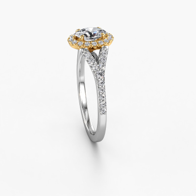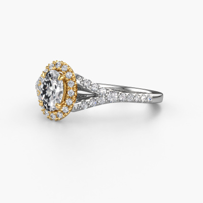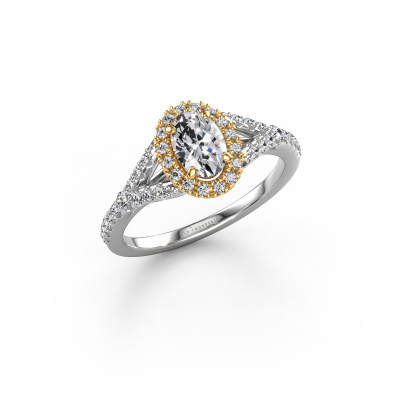 The ring shown above is called the Kimber OVL. We call this type of ring a pavé solitaire ring because it has one center gemstone and a band that is also pave set with gemstones. The 14 Carat white gold engagement ring is set with a oval 0.60 crt diamond center stone and the band is pave set with lab-grown diamond gemstones. Each jewel is made with passion and love by one of our master goldsmiths.This exclusive white gold pavé solitaire engagement ring has an exquisite oval diamond center stone. To further accentuate the center stone, the band is fully set with more lab grown diamonds. Its open prong setting allows light to strike the diamond from various angles and this adds sparkle to your diamond ring. The photo shown above depicts the goldsmith's carefully handcrafted details of the ring. The high positioning of the center stone is truly eye-catching. The perfect engagement ring for the crown jewel of your life! By using a combination of the latest modern techniques, combined with ancient crafting, we can make all our engagement rings in our own studio. Each jewel is made to order. This is advantageous because we can offer you a price you won't find anywhere else.Our team adds new designs to our online collection daily. Our designers and goldsmiths work together in creating the best design. We strive to offer a diverse collection of jewels. Perhaps you have a specific jewel design in mind. One you came across somewhere. Please contact us for a free consultation. We will make you an offer, based on a fair price/ quality ratio, that will baffle you.To make it easier for you, we offer a 30 day return policy. Check our terms and conditions.