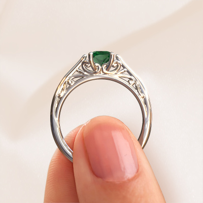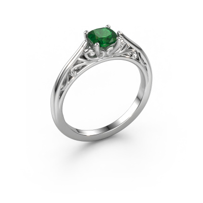 This 14 Carat white gold ring is called Shannon cus and is set with 5 mm emerald. What is it that makes your relationship unique? What is it about her that makes you want to bend down on one knee? The unique bond between the two of you is emphasized by an equally unique ring. A one of a kind ajour solitaire engagement ring made especially for her. That is why this Celtic ring fits her like a glove. Each specific detail of this ajour white gold emerald set engagement ring is hand-picked, crafted and polished by our expert goldsmith. The result is an exquisite ring, unique and perfectly crafted to perfection. That is what our expert Goldsmiths strive for. This jewel is made just for you, with attention to detail and design.By using our modern techniques, we can design and customize the finest quality jewels with the utmost care for you. Our engagement rings are always priced 30 percent lower than other jewelers. We make engagement rings to order so we don't have to maintain a large stock. If you have a certain budget, we are more than happy to advice you accordingly.Our team adds new designs to our online collection daily. Our designers and goldsmiths work together in creating the best design. We strive to offer a diverse collection of jewels. Perhaps you have a specific jewel design in mind. One you came across somewhere. Please contact us for a free consultation. We will make you an offer, based on a fair price/ quality ratio, that will baffle you.To make it easier for you, we offer a 30 day return policy. Check our terms and conditions.