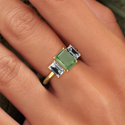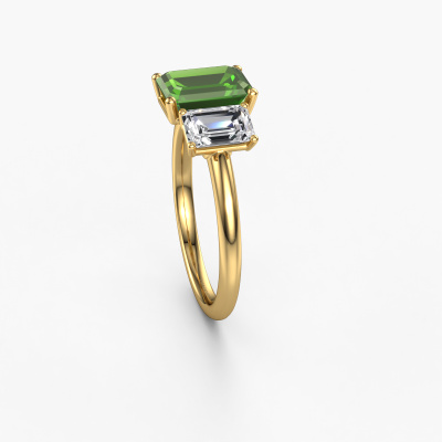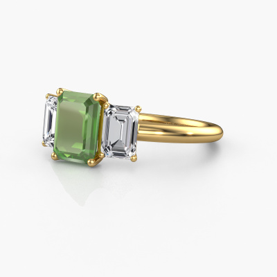 This 14 Carat gold ring is called Sandra and is set with 8x6 mm tourmaline green. Does your girlfriend fancy exclusive jewelry? Or would you like to show her that she deserves the finest jewelry? This gold ring is pure craftsmanship, love and passion combined with the latest techniques coming together in perfect harmony. It requires a keen eye, patience and a skillful hand to mold this ring into perfection. Just the job for our expert goldsmith! The tourmaline green set gemstones gives this gold ring an extra glamorous appearance. Customize the style of the special engagement ring to her liking with a wide variety of precious metals and gemstones which you select. That is how you create a unique ring for the most exclusive woman in your life! This jewel is made just for you by our master goldsmiths in our own studio.Because we design and deliver our own rings, we can offer you a engagement ring at a price you won't find anywhere else. A ring is made to order, which helps prevent excess supplies, so we can make you a great price offer. We understand it feels risky, buying your engagement ring online, but we will gladly assist in the designing process, taking your budget into consideration.Different styles of new rings are made daily by our team. Perhaps you have found a 3-stone engagement ring somewhere. One you would like to give to your loved one. Please feel free to share your thoughts and design with our jewel designers. We would love to turn your design into a exclusive engagement ring. You can follow the development of your ring design because we use very detailed 3D drawings. On top of that, you can order a dummy of the design. A dummy is a plastic ring, which can be shaped according your ring design. You can try it on and check if the engagement ring is up to standard. We will gladly send you a non-binding offer, based on a fair price/ quality ratio. The offer will baffle you, considering the quality of the ring and gemstones.To make it easier for you, we offer a 30 day return policy. Check our terms and conditions.