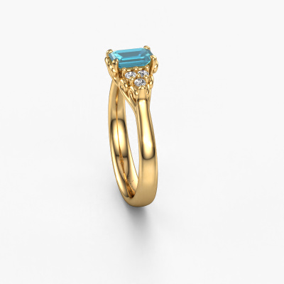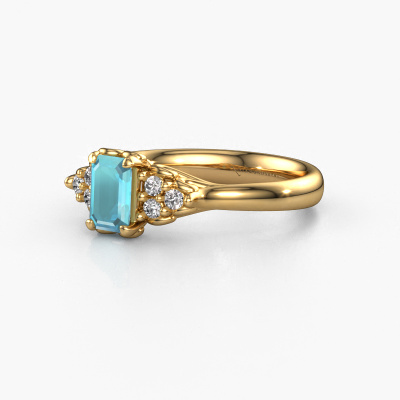 This 14 Carat gold ring is called Myrna EME and is set with 6x4 mm blue topaz. This filigree gold engagement ring is a true work of art! A beautifully adorned design of intricate wires. With dedication, patience and the utmost precision, our expert goldsmith will design a ring just for you. The adornment of small wiring is crafted to perfection by hand. It's a lengthy process which includes welding, crafting and polishing until our Goldsmiths are completely satisfied with the result: a perfect eye-catching ring that makes her shine with delight. Therefore the vintage filigree engagement ring is an extraordinary gift to bestow upon the love of your life. A handmade one-of-a-kind personalized ring, to be given to that special someone on that special moment when you pop the question. Isn't that wonderful? This piece of jewelry is unique in every way! Simply customize to your likingBy using our modern techniques, we can design and customize the finest quality jewels with the utmost care for you. Our engagement rings are always priced 30 percent lower than other jewelers. We make engagement rings to order so we don't have to maintain a large stock. If you have a certain budget, we are more than happy to advice you accordingly.Have you found a specific engagement ring somewhere which you would like to give to your loved one? Please feel free to express your wishes to our jewel designers because we would be honored to turn your design into a vintage engagement ring. You can follow the development of your ring design because we use 3D drawings. This gives you a realistic preview of how your design will look. You can also preorder a dummy. A dummy is a plastic ring, which can be shaped according your ring design. You can try it on and check if its width and size are suitable for you. We will gladly send you a non-binding offer, based on a fair price/ quality ratio. It will amaze you, considering the quality of the ring and gemstones.To make it easier for you, we offer a 30 day return policy. Check our terms and conditions.