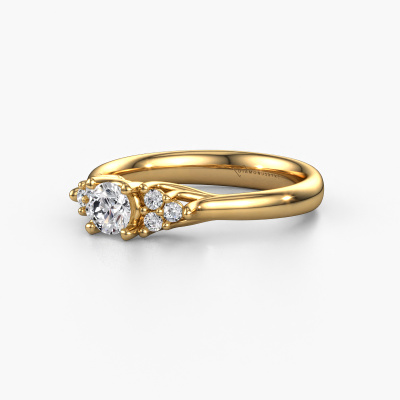 This 14 Carat gold ring is called Monika RND and is set with 0.408 crt diamond. Does your girlfriend fancy exclusive jewelry? Or would you like to show her that she deserves the finest jewelry? This gold ring is pure craftsmanship, love and passion combined with the latest techniques coming together in perfect harmony. It requires a keen eye, patience and a skillful hand to mold this ring into perfection. Just the job for our expert goldsmith! The diamonds set gemstones gives this gold ring an extra glamorous appearance. Customize the style of the ajour engagement ring to her liking with a wide variety of precious metals and gemstones which you select. That is how you create a unique ring for the most exclusive woman in your life! This jewel is made with passion and love by one of our master goldsmiths.Are you on a budget? Please feel free to contact us, so we can go discuss your options. We offer our engagement rings at guaranteed best price, because we make them to order. You won't find such a price anywhere else!Have you found a specific engagement ring somewhere which you would like to give to your loved one? Please feel free to express your wishes to our jewel designers because we would be honored to turn your design into a classic engagement ring. You can follow the development of your ring design because we use 3D drawings. This gives you a realistic preview of how your design will look. You can also preorder a dummy. A dummy is a plastic ring, which can be shaped according your ring design. You can try it on and check if its width and size are suitable for you. We will gladly send you a non-binding offer, based on a fair price/ quality ratio. It will amaze you, considering the quality of the ring and gemstones.To make it easier for you, we offer a 30 day return policy. Check our terms and conditions.