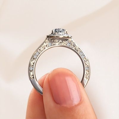 This platinum ring is called Alice OVL and is set with 0.904 crt lab-grown diamond. What is it that makes your relationship unique? What is it about her that makes you want to bend down on one knee? The unique bond between the two of you is emphasized by an equally unique ring. A one of a kind filigree halo engagement ring made especially for her. That is why this vintage ring fits her like a glove. Each specific detail of this filigree platinum lab-grown diamond set engagement ring is hand-picked, crafted and polished by our expert goldsmith. The result is an exquisite ring, unique and perfectly crafted to perfection. That is what our expert Goldsmiths strive for. This jewel is made with passion and love by one of our master goldsmiths.By using our modern techniques, we can design and customize the finest quality jewels with the utmost care for you. Our engagement rings are always priced 30 percent lower than other jewelers. We make engagement rings to order so we don't have to maintain a large stock. If you have a certain budget, we are more than happy to advice you accordingly.Our team adds new designs to our online collection daily. Our designers and goldsmiths work together in creating the best design. We strive to offer a diverse collection of jewels. Perhaps you have a specific jewel design in mind. One you came across somewhere. Please contact us for a free consultation. We will make you an offer, based on a fair price/ quality ratio, that will baffle you.To make it easier for you, we offer a 30 day return policy. Check our terms and conditions.