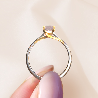 The ring shown above is called the Mia Square, we call this a solitaire ring because it contains a single gemstone. The engagement ring is made in 14 Carat white gold and has a princess morganite champagne of 4 mm. The cool thing about our configurator is that you can compile your own piece of jewelry, into a completely personalized one. This solitaire ring is crafted in the precious metals white gold with gold, but of course you are free to pick your own colors. Each piece of jewelry is made by a team of passionate goldsmiths and jewel designers. This will make your crown jewel truly eye-catching.The solitaire ring is a special type of engagement ring. Its open prong setting allows light to strike the gemstone from various angles. This modern engagement ring is a stunning eye-catcher because of the high positioning of the gemstone. In order for you to commemorate your proposal with a unique ring, we carefully adorn this solitaire ring by hand. The love of your life deserves nothing but the best. By using our modern techniques, we can design and customize the finest quality jewels with the utmost care for you. Our engagement rings are always priced 30 percent lower than other jewelers. We make engagement rings to order so we don't have to maintain a large stock. If you have a certain budget, we are more than happy to advice you accordingly.Have you found a specific engagement ring somewhere which you would like to give to your loved one? Please feel free to express your wishes to our jewel designers because we would be honored to turn your design into a modern engagement ring. You can follow the development of your ring design because we use 3D drawings. This gives you a realistic preview of how your design will look. You can also preorder a dummy. A dummy is a plastic ring, which can be shaped according your ring design. You can try it on and check if its width and size are suitable for you. We will gladly send you a non-binding offer, based on a fair price/ quality ratio. It will amaze you, considering the quality of the ring and gemstones.To make it easier for you, we offer a 30 day return policy. Check our terms and conditions.