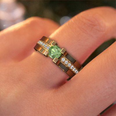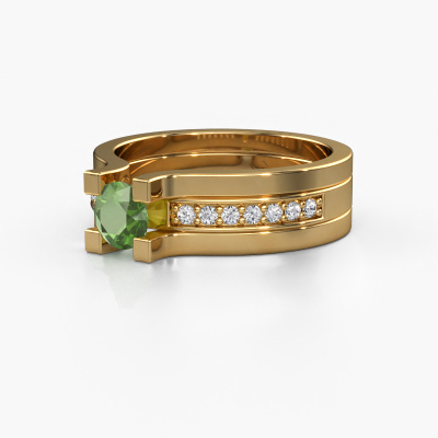 This 14 Carat gold ring is called Myrthe and is set with 5 mm tourmaline green. This exclusive gold pavé solitaire engagement ring is a true work of art! The ornaments are crafted with a lot of patience and great passion. In order to create this ring with great precision, this craft requires a keen eye and skillful hand. A challenge which ignites a fire in our expert goldsmith. The exquisite tourmaline green are set in a special way so they stand out even more. This gives the ring an even more glamorous appearance. The graceful engagement ring is actually unique on its own because of the gemstones which we carefully select especially for this ring. On top of that you select the precious metals which will be used to create a unique ring for the most extraordinary woman in your life! This jewel is made just for you, with attention to detail and design.After receiving your order, our goldsmiths will start the creative process of making your Myrthe engagement ring. We don't keep stock. This is advantageous because these costs will not be passed on to you. Therefore, we can offer jewelry at exceptionally low prices.Our designers and goldsmiths work together each day, creating new jewels. Perhaps you have found a nice modern engagement ring somewhere, which can be used to customize your unique ring. Please feel free to contact us. We will make you an offer, based on a fair price/ quality ratio, which will amaze you.To make it easier for you, we offer a 30 day return policy. Check our terms and conditions.