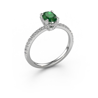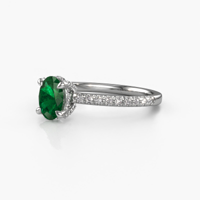 This platinum ring is called Saskia 1 ovl and is set with 7x5 mm emerald. Does your girlfriend fancy exclusive jewelry? Or would you like to show her that she deserves the finest jewelry? This platinum ring is pure craftsmanship, love and passion combined with the latest techniques coming together in perfect harmony. It requires a keen eye, patience and a skillful hand to mold this ring into perfection. Just the job for our expert goldsmith! The emeralds set gemstones gives this platinum ring an extra glamorous appearance. Customize the style of the daring engagement ring to her liking with a wide variety of precious metals and gemstones which you select. That is how you create a unique ring for the most exclusive woman in your life! This jewel is made by a team of passionate goldsmiths and jewel designers. This will make your crown jewel truly eye-catching.After receiving your order, our goldsmiths will passionately start the creative process of making your engagement ring in our own studio. Because we don't have a big stockpile, these costs will not be passed on to you. Our pricing is proof of that! We offer top quality jewels at lowest price, guaranteed.Different styles of new rings are made daily by our team. Perhaps you have found a pavé solitaire engagement ring somewhere. One you would like to give to your loved one. Please feel free to share your thoughts and design with our jewel designers. We would love to turn your design into a luxury engagement ring. You can follow the development of your ring design because we use very detailed 3D drawings. On top of that, you can order a dummy of the design. A dummy is a plastic ring, which can be shaped according your ring design. You can try it on and check if the engagement ring is up to standard. We will gladly send you a non-binding offer, based on a fair price/ quality ratio. The offer will baffle you, considering the quality of the ring and gemstones.To make it easier for you, we offer a 30 day return policy. Check our terms and conditions.