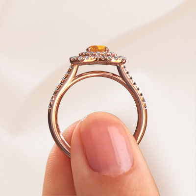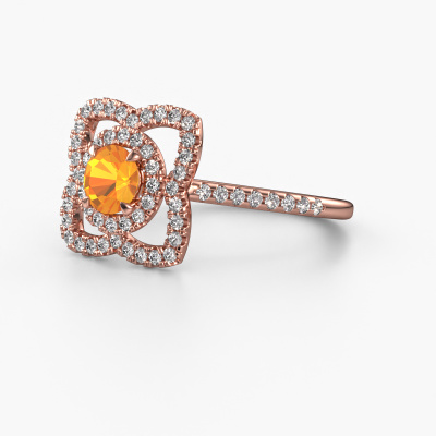 This 14 Carat rose gold ring is called Cleopatra and is set with citrin. An extraordinary rose gold vintage ring. One that will surely make the love of your life shine like a diamond! That is what we hope to achieve. This vintage engagement ring is set with exquisite citrin. Whichever gemstone you choose from our selection, is up to you. The gemstone is selected with great care because we believe your engagement ring must be adorned with nothing but the most beautiful gemstone. Wouldn't you agree? Our expert goldsmith will design your ring in our own artisan studio, where the citrin will be set with great precision. The ring will then be polished till it is absolutely perfect. Nothing but the best for the love of your life! This jewel is made just for you, with attention to detail and design.After receiving your order, our goldsmiths will passionately start the creative process of making your engagement ring in our own studio. Because we don't have a big stockpile, these costs will not be passed on to you. Our pricing is proof of that! We offer top quality jewels at lowest price, guaranteed.Have you found a specific engagement ring somewhere which you would like to give to your loved one? Please feel free to express your wishes to our jewel designers because we would be honored to turn your design into a vintage engagement ring. You can follow the development of your ring design because we use 3D drawings. This gives you a realistic preview of how your design will look. You can also preorder a dummy. A dummy is a plastic ring, which can be shaped according your ring design. You can try it on and check if its width and size are suitable for you. We will gladly send you a non-binding offer, based on a fair price/ quality ratio. It will amaze you, considering the quality of the ring and gemstones.To make it easier for you, we offer a 30 day return policy. Check our terms and conditions.