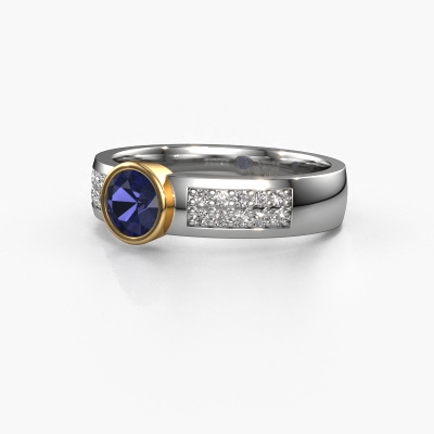 The ring shown above is called the Ise 3. We call this type of ring a pavé solitaire ring because it has one center gemstone and a band that is also pave set with gemstones. The 14 Carat white gold engagement ring is set with a round 4.7 mm sapphire center stone and the band is pave set with diamond gemstones. Each jewel is made just for you by our master goldsmiths in our own studio.This modern white gold pavé solitaire engagement ring has an exquisite round sapphire center stone. To further accentuate the center stone, the band is fully set with more diamonds. Its open prong setting allows light to strike the sapphire from various angles and this adds sparkle to your sapphire ring. The photo shown above depicts the goldsmith's carefully handcrafted details of the ring. The high positioning of the center stone is truly eye-catching. The perfect engagement ring for the crown jewel of your life! Because we design and deliver our own rings, we can offer you a engagement ring at a price you won't find anywhere else. A ring is made to order, which helps prevent excess supplies, so we can make you a great price offer. We understand it feels risky, buying your engagement ring online, but we will gladly assist in the designing process, taking your budget into consideration.Our team adds new designs to our online collection daily. Our designers and goldsmiths work together in creating the best design. We strive to offer a diverse collection of jewels. Perhaps you have a specific jewel design in mind. One you came across somewhere. Please contact us for a free consultation. We will make you an offer, based on a fair price/ quality ratio, that will baffle you.To make it easier for you, we offer a 30 day return policy. Check our terms and conditions.