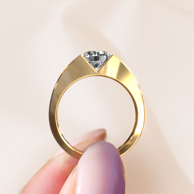 This 14 Carat gold ring is called Lizzy 1 and is set with diamond. Do you keep up with the latest fashion trends? Do you want a unique engagement ring that matches your lifestyle? This edgy engagement ring is an extraordinary ring which can be custom made to fit your or her personal style. This modern gold engagement ring is set with diamond. Our diamonds are carefully selected for this specific ring in order to create the best effect. Our expert goldsmith will create your ring in our own artisan studio where the diamond will be set with great care. The ring will then be polished to perfection. Nothing but the best for the love of your life! This jewel is created to add sparkle to your finger, each jewel is lovingly made by hand by our goldsmiths.By using our modern techniques, we can design and customize the finest quality jewels with the utmost care for you. Our engagement rings are always priced 30 percent lower than other jewelers. We make engagement rings to order so we don't have to maintain a large stock. If you have a certain budget, we are more than happy to advice you accordingly.Do you have a specific ring in mind? One you came across somewhere. Please feel free to tell us your wishes and we will turn your design into a unique engagement ring. You can follow the development of your ring design because we use 3D drawings. This gives you a realistic preview of your design. We will gladly send you a non-binding offer, based on a fair price/ quality ratio. It will amaze you.To make it easier for you, we offer a 30 day return policy. Check our terms and conditions.