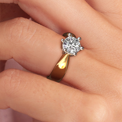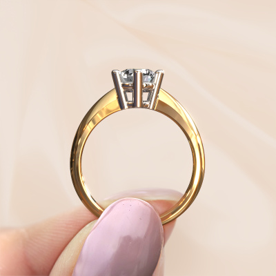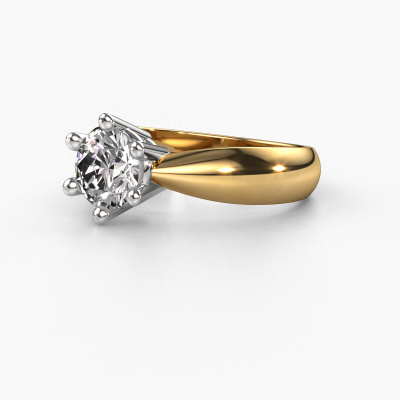 The ring shown above is called the Fay, we call this a solitaire ring because it contains a single gemstone. The engagement ring is made in 14 Carat gold and has a round diamond of 1.00 crt. This traditional gold solitaire ring with exquisite round diamond is a beautiful engagement ring. The open prong setting allows light to strike the gemstone from various angles. The ring also stands out because of the high positioning of the gemstone. Because diamonds symbolize true love and purity, they make the perfect gift for the love of your life. The symbol of eternal love is the centerpiece of this solitaire ring. Like a diamond, all other types of precious metal have their own attributed symbolic meaning. You can compile the solitaire engagement ring yourself in various precious metal combinations. This one has the combination of 14 Carat gold with white gold. Each piece of jewelry is made just for you by our master goldsmiths in our own studio.By using a combination of the latest modern techniques, combined with ancient crafting, we can make all our engagement rings in our own studio. Each jewel is made to order. This is advantageous because we can offer you a price you won't find anywhere else.Have you found a specific engagement ring somewhere which you would like to give to your loved one? Please feel free to express your wishes to our jewel designers because we would be honored to turn your design into a traditional engagement ring. You can follow the development of your ring design because we use 3D drawings. This gives you a realistic preview of how your design will look. You can also preorder a dummy. A dummy is a plastic ring, which can be shaped according your ring design. You can try it on and check if its width and size are suitable for you. We will gladly send you a non-binding offer, based on a fair price/ quality ratio. It will amaze you, considering the quality of the ring and gemstones.To make it easier for you, we offer a 30 day return policy. Check our terms and conditions.