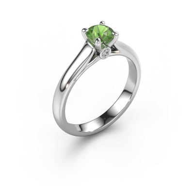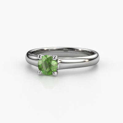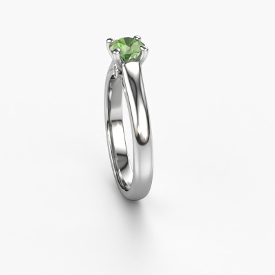 The ring shown above is called the Valorie RND 1, we call this a solitaire ring because it contains a single gemstone. The engagement ring is made in platinum and has a round tourmaline green of 5 mm. This modern platinum solitaire ring with exquisite round tourmaline green is a beautiful engagement ring. The open prong setting allows light to strike the gemstone from various angles. The ring also stands out because of the high positioning of the gemstone. Because diamonds symbolize true love and purity, they make the perfect gift for the love of your life. The symbol of eternal love is the centerpiece of this solitaire ring. Like a diamond, all other types of precious metal have their own attributed symbolic meaning. You can compile the solitaire engagement ring yourself in various precious metal combinations. This one has the combination of platinum with platinum. Each piece of jewelry is made just for you, with attention to detail and design.By using our modern techniques, we can design and customize the finest quality jewels with the utmost care for you. Our engagement rings are always priced 30 percent lower than other jewelers. We make engagement rings to order so we don't have to maintain a large stock. If you have a certain budget, we are more than happy to advice you accordingly.Do you have a specific ring in mind? One you came across somewhere. Please feel free to tell us your wishes and we will turn your design into a unique engagement ring. You can follow the development of your ring design because we use 3D drawings. This gives you a realistic preview of your design. We will gladly send you a non-binding offer, based on a fair price/ quality ratio. It will amaze you.To make it easier for you, we offer a 30 day return policy. Check our terms and conditions.