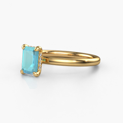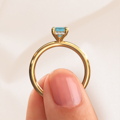 The ring shown above is called the Simone EME 2. We call this a solitaire ring because it contains a single gemstone. The engagement ring is made in 14 Carat gold and has a emerald cut blue topaz of 7x5 mm. This extraordinary traditional gold solitaire engagement ring is set with a beautiful emerald cut blue topaz to add sparkle to your proposal. The open prong setting allows light to strike the gemstone from various angles. Did you know a diamond represents everlasting love and fidelity? This makes it a perfect centerpiece. Our goldsmith carefully positions the gemstone of your choosing high on top of the ring, which makes it stand out. Each piece of jewelry is made by a team of passionate goldsmiths and jewel designers. This will make your crown jewel truly eye-catching.By using our modern techniques, we can design and customize the finest quality jewels with the utmost care for you. Our engagement rings are always priced 30 percent lower than other jewelers. We make engagement rings to order so we don't have to maintain a large stock. If you have a certain budget, we are more than happy to advice you accordingly.Do you have a specific ring in mind? One you came across somewhere. Please feel free to tell us your wishes and we will turn your design into a unique engagement ring. You can follow the development of your ring design because we use 3D drawings. This gives you a realistic preview of your design. We will gladly send you a non-binding offer, based on a fair price/ quality ratio. It will amaze you.To make it easier for you, we offer a 30 day return policy. Check our terms and conditions.