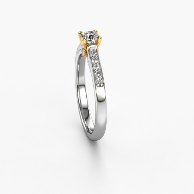 The ring shown above is called the Valorie RND 2. We call this type of ring a pavé solitaire ring because it has one center gemstone and a band that is also pave set with gemstones. The 14 Carat white gold engagement ring is set with a round 0.25 crt diamond center stone and the band is pave set with lab-grown diamond gemstones. Each jewel is made just for you, with attention to detail and design.This modern white gold pavé solitaire engagement ring has an exquisite round diamond center stone. To further accentuate the center stone, the band is fully set with more lab grown diamonds. Its open prong setting allows light to strike the diamond from various angles and this adds sparkle to your diamond ring. The photo shown above depicts the goldsmith's carefully handcrafted details of the ring. The high positioning of the center stone is truly eye-catching. The perfect engagement ring for the crown jewel of your life! By using our modern techniques, we can design and customize the finest quality jewels with the utmost care for you. Our engagement rings are always priced 30 percent lower than other jewelers. We make engagement rings to order so we don't have to maintain a large stock. If you have a certain budget, we are more than happy to advice you accordingly.Our designers and goldsmiths work together each day, creating new jewels. Perhaps you have found a nice modern engagement ring somewhere, which can be used to customize your unique ring. Please feel free to contact us. We will make you an offer, based on a fair price/ quality ratio, which will amaze you.To make it easier for you, we offer a 30 day return policy. Check our terms and conditions.