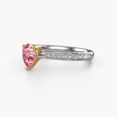 The ring shown above is called the Mignon per 2. We call this type of ring a pavé solitaire ring because it has one center gemstone and a band that is also pave set with gemstones. The 14 Carat white gold engagement ring is set with a pear 6.5x4.5 mm pink lab grown diamond center stone and the band is pave set with diamond gemstones. Each jewel is made just for you by our master goldsmiths in our own studio.This trendy white gold pavé solitaire engagement ring has an exquisite pear pink lab grown diamond center stone. To further accentuate the center stone, the band is fully set with more diamonds. Its open prong setting allows light to strike the pink lab grown diamond from various angles and this adds sparkle to your pink lab grown diamond ring. The photo shown above depicts the goldsmith's carefully handcrafted details of the ring. The high positioning of the center stone is truly eye-catching. The perfect engagement ring for the crown jewel of your life! Are you on a budget? Please feel free to contact us, so we can go discuss your options. We offer our engagement rings at guaranteed best price, because we make them to order. You won't find such a price anywhere else!Our team adds new designs to our online collection daily. Our designers and goldsmiths work together in creating the best design. We strive to offer a diverse collection of jewels. Perhaps you have a specific jewel design in mind. One you came across somewhere. Please contact us for a free consultation. We will make you an offer, based on a fair price/ quality ratio, that will baffle you.To make it easier for you, we offer a 30 day return policy. Check our terms and conditions.