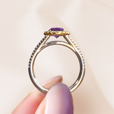 This 14 Carat white gold ring is called Verla ovl 2 and is set with 8x6 mm amethyst. Does your girlfriend fancy exclusive jewelry? Or would you like to show her that she deserves the finest jewelry? This white gold ring is pure craftsmanship, love and passion combined with the latest techniques coming together in perfect harmony. It requires a keen eye, patience and a skillful hand to mold this ring into perfection. Just the job for our expert goldsmith! The amethysten set gemstones gives this white gold ring an extra glamorous appearance. Customize the style of the split band engagement ring to her liking with a wide variety of precious metals and gemstones which you select. That is how you create a unique ring for the most exclusive woman in your life! This jewel is made by a team of passionate goldsmiths and jewel designers. This will make your crown jewel truly eye-catching.By using our modern techniques, we can design and customize the finest quality jewels with the utmost care for you. Our engagement rings are always priced 30 percent lower than other jewelers. We make engagement rings to order so we don't have to maintain a large stock. If you have a certain budget, we are more than happy to advice you accordingly.Our team adds new designs to our online collection daily. Our designers and goldsmiths work together in creating the best design. We strive to offer a diverse collection of jewels. Perhaps you have a specific jewel design in mind. One you came across somewhere. Please contact us for a free consultation. We will make you an offer, based on a fair price/ quality ratio, that will baffle you.To make it easier for you, we offer a 30 day return policy. Check our terms and conditions.