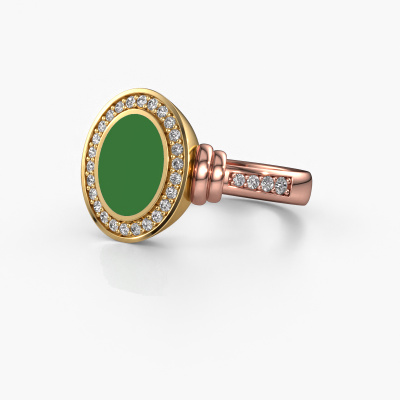 The 2 Colors Servie 1 signet ring with oval shape green enamel stone top, as shown above, is filled with tradition. Customary, the signet ring was passed down from father to son. Start your own tradition with this 2 Colors rose gold signet ring. We are also more than happy to engrave your ring with a monogram or family crest. Please check our database for further inquiries and options. You can find the departments of our education center at the bottom of this page. Start a new tradition with the design rose gold Servie 1 signet ring. How do you like this design rose gold signet ring? Simply customize this Servie 1 signet ring, using our online tool. Subsequently, your personal special Servie 1 signet ring will be made by hand by our goldsmiths. Precious metals and gemstones can be customized to your liking. Do you have specific preferences which are unavailable in our online tool? Please feel free to contact us. We will customize your personal design signet ring to your liking.Our team of talented, passionate designers add new ring designs to our online collection daily. Our objective in doing so, is to be able to offer you a wide variety of jewels. Please feel free to request a quote if you have specific wishes for your ring. We guarantee to make you an offer you can't refuse.After receiving your order, our goldsmiths will passionately start the creative process of making your ring in our own studio. Because we don't have a big stockpile, these costs will not be passed on to you. Our pricing is proof of that! We offer top quality jewels at lowest price, guaranteed.To make it easier for you, we offer a 30 day return policy. Check our terms and conditions.