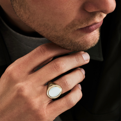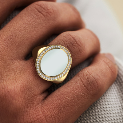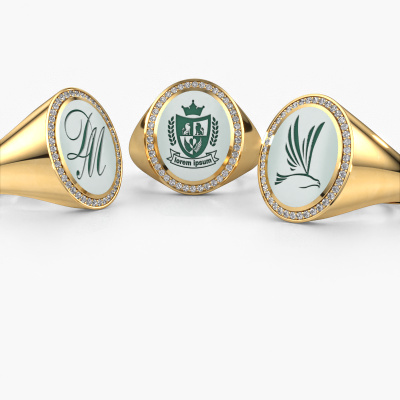 The solid Adam 4 signet ring with oval shape green sardonyx stone top, as shown above, is filled with tradition. Customary, the signet ring was passed down from father to son. Start your own tradition with this solid gold signet ring. We are also more than happy to engrave your ring with a monogram or family crest. Please check our database for further inquiries and options. You can find the departments of our education center at the bottom of this page. Start a new tradition with the exclusive gold Adam 4 signet ring. The best part of this luxury signet ring is that you can customize it to your own liking. Your style, your choice, your signet ring. On top of that, your exclusive gold signet ring will be made by hand with eco-friendly materials! Please feel free to easily customize the ring, using our online tool. Of course, you can always contact us. We will gladly help you compiling your exclusive signet ring. Is there a design you like, but you would like to customize it with a gemstone we do not offer on our website, then please contact us. We're happy to tell you about the possibilities.Our team of talented, passionate designers add new ring designs to our online collection daily. Our objective in doing so, is to be able to offer you a wide variety of jewels. Please feel free to request a quote if you have specific wishes for your ring. We guarantee to make you an offer you can't refuse.After receiving your order, our goldsmiths will passionately start the creative process of making your ring in our own studio. Because we don't have a big stockpile, these costs will not be passed on to you. Our pricing is proof of that! We offer top quality jewels at lowest price, guaranteed.To make it easier for you, we offer a 30 day return policy. Check our terms and conditions.