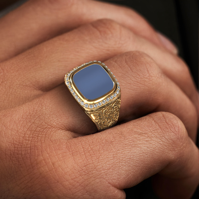 The square Jesse 3 men's ring with square blue sardonyx stone top, as shown above, is filled with tradition. Customary, the men's ring was passed down from father to son. Start your own tradition with this square gold men's ring. We are also more than happy to engrave your ring with a monogram or family crest. Please check our database for further inquiries and options. You can find the departments of our education center at the bottom of this page. Start a new tradition with the Celtic gold Jesse 3 men's ring. How do you like this Celtic gold signet ring? Simply customize this Jesse 3 signet ring, using our online tool. Subsequently, your personal crests Jesse 3 signet ring will be made by hand by our goldsmiths. Precious metals and gemstones can be customized to your liking. Do you have specific preferences which are unavailable in our online tool? Please feel free to contact us. We will customize your personal Celtic signet ring to your liking.Our talented designers add new designs to our online collection daily. Together they create a diverse collection of the finest jewelry. If you prefer to make a ring according your own design, please feel free to request a quote. We will make you an amazing offer, based on quality and price.By using a combination of the latest modern techniques, combined with ancient crafting, we can make all our rings in our own studio. Each jewel is made to order. This is advantageous because we can offer you a price you won't find anywhere else.To make it easier for you, we offer a 30 day return policy. Check our terms and conditions.