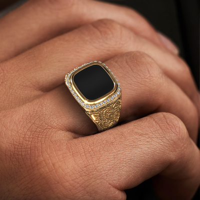 The square Jesse 3 men's ring with square onyx stone top, as shown above, is filled with tradition. Customary, the men's ring was passed down from father to son. Start your own tradition with this square gold men's ring. We are also more than happy to engrave your ring with a monogram or family crest. Please check our database for further inquiries and options. You can find the departments of our education center at the bottom of this page. Start a new tradition with the Celtic gold Jesse 3 men's ring. How do you like this Celtic gold signet ring? Simply customize this Jesse 3 signet ring, using our online tool. Subsequently, your personal crests Jesse 3 signet ring will be made by hand by our goldsmiths. Precious metals and gemstones can be customized to your liking. Do you have specific preferences which are unavailable in our online tool? Please feel free to contact us. We will customize your personal Celtic signet ring to your liking.Our talented designers add new designs to our online collection daily. Together they create a diverse collection of the finest jewelry. If you prefer to make a ring according your own design, please feel free to request a quote. We will make you an amazing offer, based on quality and price.By using a combination of the latest modern techniques, combined with ancient crafting, we can make all our rings in our own studio. Each jewel is made to order. This is advantageous because we can offer you a price you won't find anywhere else.To make it easier for you, we offer a 30 day return policy. Check our terms and conditions.
