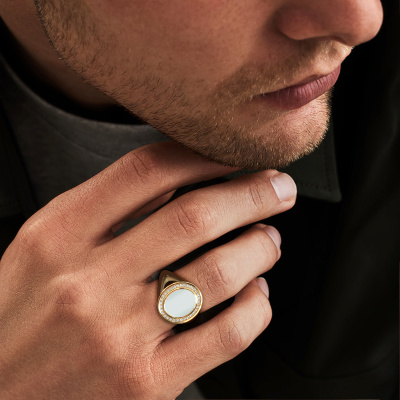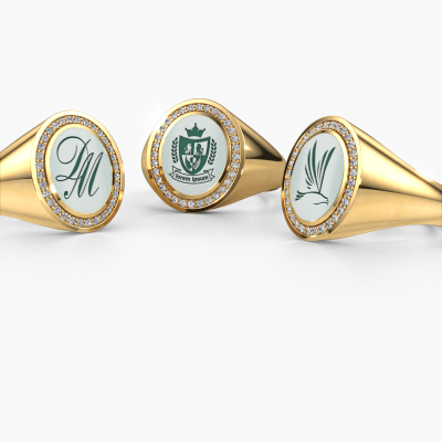 The oval Adam 2 signet ring with oval shape green sardonyx stone top, as shown above, is filled with tradition. Customary, the signet ring was passed down from father to son. Start your own tradition with this oval gold signet ring. We are also more than happy to engrave your ring with a monogram or family crest. Please check our database for further inquiries and options. You can find the departments of our education center at the bottom of this page. Start a new tradition with the exclusive gold Adam 2 signet ring. The diamonds Adam 2 signet ring, as shown here, can be customized to your liking. Our online tool offers many different options but please feel free to contact us if you want changes made to your Adam 2 signet ring, which are unavailable in our online tool.Our talented designers add new designs to our online collection daily. Together they create a diverse collection of the finest jewelry. If you prefer to make a ring according your own design, please feel free to request a quote. We will make you an amazing offer, based on quality and price.After receiving your order, our goldsmiths will start the creative process of making your Adam 2 ring. We don't keep stock. This is advantageous because these costs will not be passed on to you. Therefore, we can offer jewelry at exceptionally low prices.To make it easier for you, we offer a 30 day return policy. Check our terms and conditions.