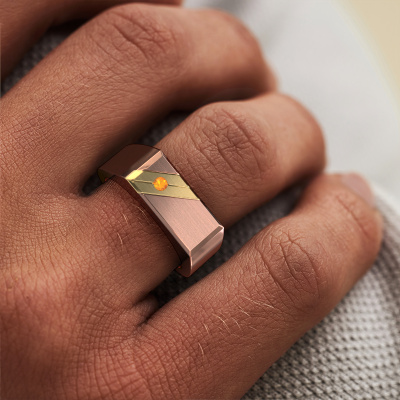 Dress to impress with this rectangular Dree 5 men's ring, because with the right ring you make a strong personal statement. This Dree 5 flat men's ring is shown in 14 Carat rose gold. If this doesn't suit your style, feel free to customize the precious metal to your liking. After all, you want a men's ring that matches your style. A ring that truly suits you. One saying: This is who I am!As soon as you finished designing your Dree 5 men's ring with our online tool, our goldsmiths will start their creative process of making your ring. This will be done with passion and care, according ancient crafting. On top of that, our jewels are made of eco-friendly materials. Simply customize online with our online tool, if you want any changes made. If you want specific changes made to your Dree 5 men's ring, that are unavailable in our online tool, please feel free to contact our expert designers.Our team of talented, passionate designers add new ring designs to our online collection daily. Our objective in doing so, is to be able to offer you a wide variety of jewels. Please feel free to request a quote if you have specific wishes for your ring. We guarantee to make you an offer you can't refuse.Are you on a budget? Please feel free to contact us, so we can go discuss your options. We offer our rings at guaranteed best price, because we make them to order. You won't find such a price anywhere else!To make it easier for you, we offer a 30 day return policy. Check our terms and conditions.