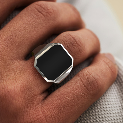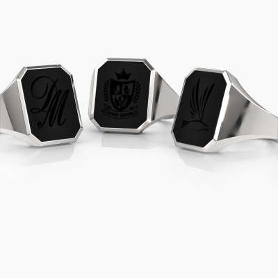The solid Lars 5 signet ring with octagon onyx stone top, as shown above, is filled with tradition. Customary, the signet ring was passed down from father to son. Start your own tradition with this solid white gold signet ring. We are also more than happy to engrave your ring with a monogram or family crest. Please check our database for further inquiries and options. You can find the departments of our education center at the bottom of this page. Start a new tradition with the chic white gold Lars 5 signet ring. The luxury Lars 5 signet ring, as shown here, can be customized to your liking. Our online tool offers many different options but please feel free to contact us if you want changes made to your Lars 5 signet ring, which are unavailable in our online tool.New jewelry designs are added to our online collection daily. Our team of passionate designers strive to create extraordinary and diverse designs. Have you seen a ring you like? Please feel free to contact us. Based on a good price/ quality ratio, we will make you an offer you can't refuse!Because we design and deliver our own rings, we can offer you a ring at a price you won't find anywhere else. A ring is made to order, which helps prevent excess supplies, so we can make you a great price offer. We understand it feels risky, buying your ring online, but we will gladly assist in the designing process, taking your budget into consideration.To make it easier for you, we offer a 30 day return policy. Check our terms and conditions.