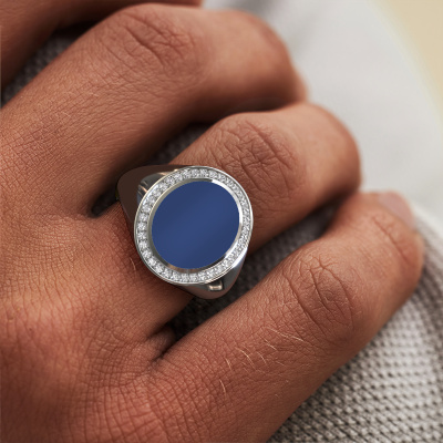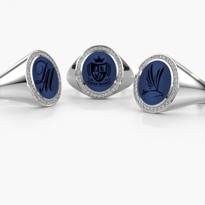 The oval Adam 3 signet ring with oval shape lapis stone top, as shown above, is filled with tradition. Customary, the signet ring was passed down from father to son. Start your own tradition with this oval white gold signet ring. We are also more than happy to engrave your ring with a monogram or family crest. Please check our database for further inquiries and options. You can find the departments of our education center at the bottom of this page. Start a new tradition with the exclusive white gold Adam 3 signet ring. Customize your own diamonds Adam 3 signet ring, which will then be created by our goldsmiths with great passion. Do you prefer a different option than is shown here in the white gold Adam 3 signet ring? Then our online tools offers various options. Feel free to ask us for help if you are unable to succeed. We are happy to answer your questions!Our team of talented, passionate designers add new ring designs to our online collection daily. Our objective in doing so, is to be able to offer you a wide variety of jewels. Please feel free to request a quote if you have specific wishes for your ring. We guarantee to make you an offer you can't refuse.Because we design and deliver our own rings, we can offer you a ring at a price you won't find anywhere else. A ring is made to order, which helps prevent excess supplies, so we can make you a great price offer. We understand it feels risky, buying your ring online, but we will gladly assist in the designing process, taking your budget into consideration.To make it easier for you, we offer a 30 day return policy. Check our terms and conditions.