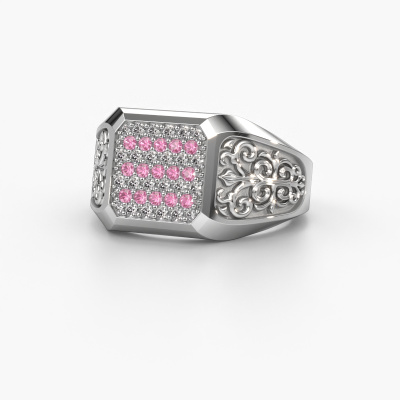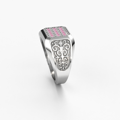 Are you looking for a design platinum men's ring that is slightly different? Then our flat platinum pink sapphire set Amir men's ring is the perfect ring for you! This ring, as shown here, is made of platinum but feel free to customize to your liking. Show them what you are all about with this platinum pink sapphire Amir men's ring, a ring for ambitious men. Our goldsmiths passionately create your customized men's ring to your liking with the utmost care. The platinum men's ring, as shown here, can be customized using our online tool. Feel free to ask our jewel designers for assistance if you want changes made which are unavailable in our online tool. We are happy to answer your questions.Our team of talented, passionate designers add new ring designs to our online collection daily. Our objective in doing so, is to be able to offer you a wide variety of jewels. Please feel free to request a quote if you have specific wishes for your ring. We guarantee to make you an offer you can't refuse.Because we design and deliver our own rings, we can offer you a ring at a price you won't find anywhere else. A ring is made to order, which helps prevent excess supplies, so we can make you a great price offer. We understand it feels risky, buying your ring online, but we will gladly assist in the designing process, taking your budget into consideration.To make it easier for you, we offer a 30 day return policy. Check our terms and conditions.