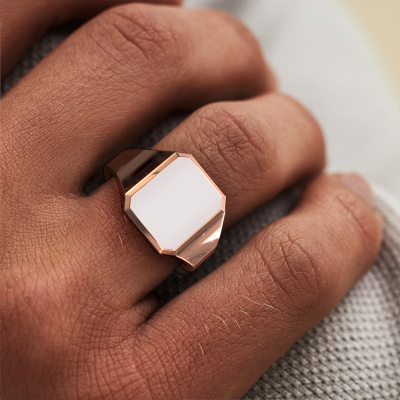 The rectangular Lars 2 signet ring with octagon red sardonyx stone top, as shown above, is filled with tradition. Customary, the signet ring was passed down from father to son. Start your own tradition with this rectangular rose gold signet ring. We are also more than happy to engrave your ring with a monogram or family crest. Please check our database for further inquiries and options. You can find the departments of our education center at the bottom of this page. Start a new tradition with the traditional rose gold Lars 2 signet ring. The affordable Lars 2 signet ring, as shown here, can be customized to your liking. Our online tool offers many different options but please feel free to contact us if you want changes made to your Lars 2 signet ring, which are unavailable in our online tool.Our team of talented, passionate designers add new ring designs to our online collection daily. Our objective in doing so, is to be able to offer you a wide variety of jewels. Please feel free to request a quote if you have specific wishes for your ring. We guarantee to make you an offer you can't refuse.By using our modern techniques, we can design and customize the finest quality jewels with the utmost care for you. Our rings are always priced 30 percent lower than other jewelers. We make rings to order, so we don't have to maintain a large stock. If you have a certain budget, we are more than happy to advice you accordingly.To make it easier for you, we offer a 30 day return policy. Check our terms and conditions.