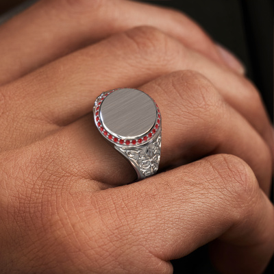 For any ring wearing individual who likes straight shapes, without too much embellishment, we offer the round white gold Moor 1 signet ring. This flat surfaced ring stands out with its tight, stylish design and is perfect for the contemporary, confident man. Do you prefer engraving of your ring with a monogram or family seal? Please check our database at the bottom of the page for further inquiries and options. The best part of this special signet ring is that you can customize it to your own liking. Your style, your choice, your signet ring. On top of that, your fantasy white gold signet ring will be made by hand with eco-friendly materials! Please feel free to easily customize the ring, using our online tool. Of course, you can always contact us. We will gladly help you compiling your fantasy signet ring. Is there a design you like, but you would like to customize it with a gemstone we do not offer on our website, then please contact us. We're happy to tell you about the possibilities.New jewelry designs are added to our online collection daily. Our team of passionate designers strive to create extraordinary and diverse designs. Have you seen a ring you like? Please feel free to contact us. Based on a good price/ quality ratio, we will make you an offer you can't refuse!After receiving your order, our goldsmiths will passionately start the creative process of making your ring in our own studio. Because we don't have a big stockpile, these costs will not be passed on to you. Our pricing is proof of that! We offer top quality jewels at lowest price, guaranteed.To make it easier for you, we offer a 30 day return policy. Check our terms and conditions.