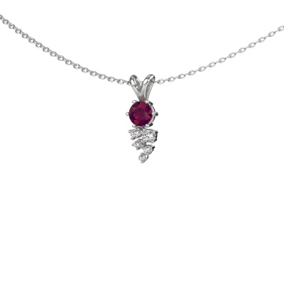 This fantasy pendant Royce is set with a stunning round rhodolite. In the past, gemstones were believed to have specific characteristics. Choose your gemstones based on these characteristics, or because they suit you, or because you simply like the color. Whether you believe birthstones have certain characteristics or not, this graceful pendant set with a carefully selected rhodolite is truly eye-catching. A beautiful pendant to finish your outfit. You can also have the pendant set with your own or your children's birthstones, giving your pendant an extra meaning. Here the platinum pendant is set with 4 mm rhodolite. A customized fantasy graceful pendant is the perfect gift! New exquisite designs are added daily by our team of passionate goldsmiths. And each design can be customized. Simply customize the precious metals and the color of gemstones which will be used, for example. This makes your design of the fantasy Royce pendant truly unique!