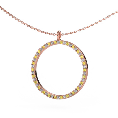 What a beautiful, contemporary pendant! A round pendant to finish your outfit. Buy it from DiamondsByMe. Our goldsmiths use the finest precious metals and gemstones to create our most extraordinary pieces of jewelry. Take this modern rose gold yellow sapphire set Towanda pendant, for example. It was selected with great care, because your pendant should only be adorned with the finest yellow sapphire. Our goldsmith will make your pendant by hand and will set the yellow sapphire with great precision. Then it will be finished and polished to perfection, leaving you with a stunning pendant as a result!What could possibly be more beautiful than a personally designed modern pendant, handmade by yours truly? Please, feel free to customize each model by choosing different precious metals and gemstones. This makes your pendant truly unique. This pendant can be customized to your liking. It goes without saying that you can also ask us for help. We are more than willing to assist in designing your Towanda modern pendant. If you like but still have specific wishes concerning customizing your design, such as adding a gemstone which isn't mentioned in the list, feel free to contact us. We will gladly inform you on different options.