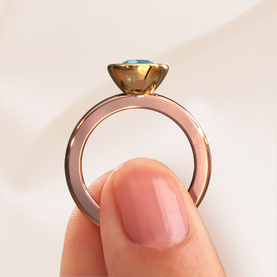 Stacked rings are the perfect addition to your ring collection. They are very popular! This 14 Carat rose gold stacking ring with round blue topaz can be combined with other stacked rings or a ring you currently own. A stacked ring is a perfect reminder of a memorable moment or a loved one. Stack the milestones in your life and let the rings do the talking. This 1 stone stacking ring is called Eloise Round. It was designed by our own expert goldsmiths and we still make it by hand in our own artisan studio. Simply customize to your liking!A customized trendy stacking ring is the perfect gift! New exquisite designs are added daily by our team of passionate goldsmiths. And each design can be customized. Simply customize the precious metals and the color of gemstones which will be used, for example. This makes your design of the trendy Eloise Round stacking ring truly unique!After receiving your order, our goldsmiths will passionately start the creative process of making your ring in our own studio. Because we don't have a big stockpile, these costs will not be passed on to you. Our pricing is proof of that! We offer top quality jewels at lowest price, guaranteed.To make it easier for you, we offer a 30 day return policy. Check our terms and conditions.