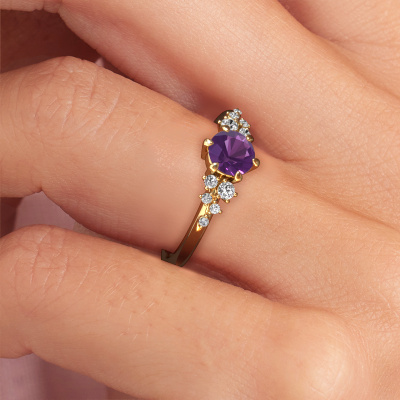 This is a stunning best price gold Royce RND ring. It is set with amethyst. A designer ring, fit for classy women. The ring is designed by our own expert goldsmiths. In our artisan studio, we use a combination of the latest techniques and ancient