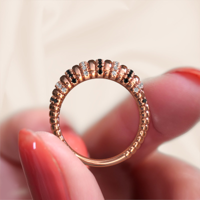 How would you describe your own style? Are you looking for something uniquely different? This best price rose gold Dawn 10mm ring is astonishing! Simply customize to your or her own liking. This ring is set with black diamond. These black diamonds have been carefully selected because your ring must be adorned with nothing but the most beautiful gemstone. Wouldn't you agree? Our expert goldsmith will create your ring in our own crafting studios, where the black diamond will be set with care. The ring will then be polished to perfection to give it that extra sparkle. It's a perfect ring for a woman of excellent taste!Our goldsmiths passionately create your customized ring to your liking with the utmost care. The rose gold ring, as shown here, can be customized using our online tool. Feel free to ask our jewel designers for assistance if you want changes made which are unavailable in our online tool. We are happy to answer your questions.Because we design and deliver our own rings, we can offer you a ring at a price you won't find anywhere else. A ring is made to order, which helps prevent excess supplies, so we can make you a great price offer. We understand it feels risky, buying your ring online, but we will gladly assist in the designing process, taking your budget into consideration.To make it easier for you, we offer a 30 day return policy. Check our terms and conditions.
