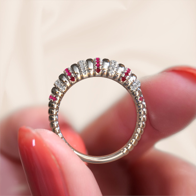 How would you describe your own style? Are you looking for something uniquely different? This best price white gold Dawn 10mm ring is astonishing! Simply customize to your or her own liking. This ring is set with ruby. These ruby have been carefully selected because your ring must be adorned with nothing but the most beautiful gemstone. Wouldn't you agree? Our expert goldsmith will create your ring in our own crafting studios, where the ruby will be set with care. The ring will then be polished to perfection to give it that extra sparkle. It's a perfect ring for a woman of excellent taste!Our goldsmiths passionately create your customized ring to your liking with the utmost care. The white gold ring, as shown here, can be customized using our online tool. Feel free to ask our jewel designers for assistance if you want changes made which are unavailable in our online tool. We are happy to answer your questions.Because we design and deliver our own rings, we can offer you a ring at a price you won't find anywhere else. A ring is made to order, which helps prevent excess supplies, so we can make you a great price offer. We understand it feels risky, buying your ring online, but we will gladly assist in the designing process, taking your budget into consideration.To make it easier for you, we offer a 30 day return policy. Check our terms and conditions.