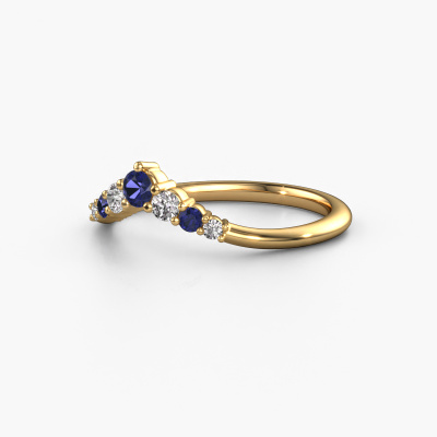 This Imani A stacking ring in 14 Carat gold is set with sapphire. This gold stacked Imani A ring is the perfect addition to your ring collection! As the name suggests, it is a ring which can be combined on one finger with another ring. It gives you the opportunity to create your own style. A stacked ring usually represents a certain memory of someone special or a memorable moment. It is common to combine a stacked ring, representing an anniversary, with a wedding ring. But this graceful ring, combined with your other rings, also makes a classy fashion item. As soon as you finished designing your Imani A stacking ring with our online tool, our goldsmiths will start their creative process of making your ring. This will be done with passion and care, according ancient crafting. On top of that, our jewels are made of eco-friendly materials. Simply customize online with our online tool, if you want any changes made. If you want specific changes made to your Imani A stacking ring, that are unavailable in our online tool, please feel free to contact our expert designers.Because we design and deliver our own rings, we can offer you a ring at a price you won't find anywhere else. A ring is made to order, which helps prevent excess supplies, so we can make you a great price offer. We understand it feels risky, buying your ring online, but we will gladly assist in the designing process, taking your budget into consideration.To make it easier for you, we offer a 30 day return policy. Check our terms and conditions.