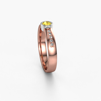 How would you describe your own style? Are you looking for something uniquely different? This edgy rose gold Ise 2 ring is astonishing! Simply customize to your or her own liking. This ring is set with yellow sapphire. These yellow sapphire have been carefully selected because your ring must be adorned with nothing but the most beautiful gemstone. Wouldn't you agree? Our expert goldsmith will create your ring in our own crafting studios, where the yellow sapphire will be set with care. The ring will then be polished to perfection to give it that extra sparkle. It's a perfect ring for a woman of excellent taste!Customize your own edgyIse 2 ring, which will then be created by our goldsmiths with great passion. Do you prefer a different option than is shown here in the rose gold Ise 2 ring? Then our online tools offers various options. Feel free to ask us for help if you are unable to succeed. We are happy to answer your questions!Are you on a budget? Please feel free to contact us, so we can go discuss your options. We offer our rings at guaranteed best price, because we make them to order. You won't find such a price anywhere else!To make it easier for you, we offer a 30 day return policy. Check our terms and conditions.