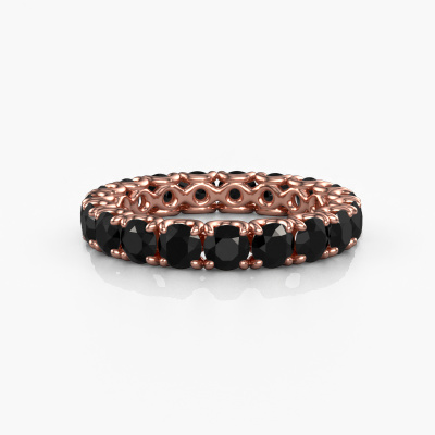 This is our Estee 3.4 ring. This specific type is called an eternity ring and it is set with a continuous line of identically cut gemstones. The ring is made in 14 Carat rose gold and is set with small black diamonds, 3.240 crt. The amazing black diamonds are identical in size and are set in the ring band. Our black diamonds are selected with great care so they are identical, which gives the best result. In order to get the best result, our artisans position all black diamonds by hand with the utmost care. Our Goldsmiths have one ambition, which is creating the perfect ring. That is why we love what we do. In the end you get a stunning modern rose gold stackable ring with a row of black diamonds which seem to have no beginning nor end. The perfect symbol of your undying love for her! How special is that!By using a combination of the latest modern techniques, combined with ancient crafting, we can make all our rings in our own studio. Each jewel is made to order. This is advantageous because we can offer you a price you won't find anywhere else.