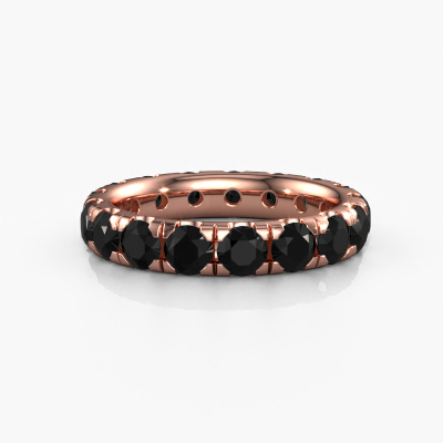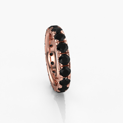 This is our Jackie 3.7 ring. This specific type is called an eternity ring and it is set with a continuous line of identically cut gemstones. The ring is made in 14 Carat rose gold and is set with small black diamonds, 4.08 crt. The amazing black diamonds are identical in size and are set in the ring band. Our black diamonds are selected with great care so they are identical, which gives the best result. In order to get the best result, our artisans position all black diamonds by hand with the utmost care. Our Goldsmiths have one ambition, which is creating the perfect ring. That is why we love what we do. In the end you get a stunning modern rose gold stackable ring with a row of black diamonds which seem to have no beginning nor end. The perfect symbol of your undying love for her! How special is that!By using our modern techniques, we can design and customize the finest quality jewels with the utmost care for you. Our rings are always priced 30 percent lower than other jewelers. We make rings to order, so we don't have to maintain a large stock. If you have a certain budget, we are more than happy to advice you accordingly.New jewelry designs are added to our online collection daily. Our team of passionate designers strive to create extraordinary and diverse designs. Have you seen a ring you like? Please feel free to contact us. Based on a good price/ quality ratio, we will make you an offer you can't refuse!To make it easier for you, we offer a 30 day return policy. Check our terms and conditions.