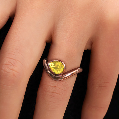 This ring called Lena is made of 14 Carat rose gold and is set with yellow sapphire. Are you in the market for a unique rose gold ring with a modern twist? Then this ring might suit you. Simply customize to your or her liking. It suits the