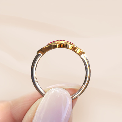This symbolic white gold Rowie ring is set with ruby. For some, a ring is nothing more than a beautiful fashion item but they can become a meaningful keepsake. A ring such as this can be worn daily and it matches numerous different styles. Designing your own unique ring, makes it even more special. You are reminded of its uniqueness every time you look at it. Perhaps it reminds you of someone special. It might bring back memories. Unforgettable moments, represented in one ring. The beauty of it all is that the used precious metals and gemstones will last a lifetime. A lifetime of memories deserves nothing less! Customize your own heartrowie ring, which will then be created by our goldsmiths with great passion. Do you prefer a different option than is shown here in the white gold rowie ring? Then our online tools offers various options. Feel free to ask us for help if you are unable to succeed. We are happy to answer your questions!By using our modern techniques, we can design and customize the finest quality jewels with the utmost care for you. Our rings are always priced 30 percent lower than other jewelers. We make rings to order, so we don't have to maintain a large stock. If you have a certain budget, we are more than happy to advice you accordingly.To make it easier for you, we offer a 30 day return policy. Check our terms and conditions.