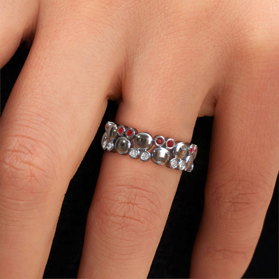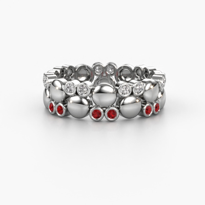 How would you describe your own style? Are you looking for something uniquely different? This orbs white gold Joanne ring is astonishing! Simply customize to your or her own liking. This ring is set with ruby. These ruby have been carefully selected because your ring must be adorned with nothing but the most beautiful gemstone. Wouldn't you agree? Our expert goldsmith will create your ring in our own crafting studios, where the ruby will be set with care. The ring will then be polished to perfection to give it that extra sparkle. It's a perfect ring for a woman of excellent taste!The best part of this orbs ring is that you can customize it to your own liking. Your style, your choice, your ring. On top of that, your fantasy white gold ring will be made by hand with eco-friendly materials! Please feel free to easily customize the ring, using our online tool.Are you on a budget? Please feel free to contact us, so we can go discuss your options. We offer our rings at guaranteed best price, because we make them to order. You won't find such a price anywhere else!To make it easier for you, we offer a 30 day return policy. Check our terms and conditions.