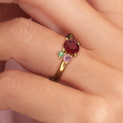 This ring called Anouk is made of 14 Carat gold and is set with ruby. Are you in the market for a unique gold ring with a modern twist? Then this ring might suit you. Simply customize to your or her liking. It suits the contemporary modern woman. This graceful ring is set with beautiful ruby. This has been carefully selected. Because your ring must be adorned with nothing but the most stunning gemstone. Our expert goldsmith will create your ring in our own studio, where the ruby will be set with great care. The ring will then be polished to perfection to create a stunning ring. By using a combination of the latest modern techniques, combined with ancient crafting, we can make all our rings in our own studio. Each jewel is made to order. This is advantageous because we can offer you a price you won't find anywhere else.Our team of talented, passionate designers add new ring designs to our online collection daily. Our objective in doing so, is to be able to offer you a wide variety of jewels. Please feel free to request a quote if you have specific wishes for your ring. We guarantee to make you an offer you can't refuse.To make it easier for you, we offer a 30 day return policy. Check our terms and conditions.