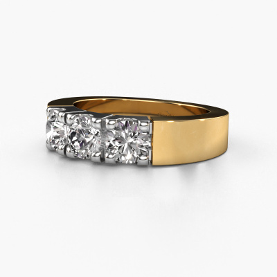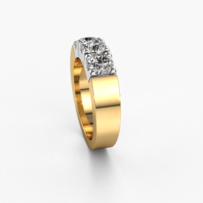 This extraordinary ring is called Dana 3. This type of ring is known as a memoire ring, because its gemstones are set in a continuous line. This makes it easy to combine with other rings. The band of this 14 Carat gold ring is set in a combination of diamond and lab-grown diamond 1.20 crt. You can easily choose the combination you prefer online. As you can see, a single diamond is set in this single alliance gold ring. The memoire ring represents collaboration. And that is precisely what these gemstones do, collaborate. Together they add a beautiful effect to the band of a modern ring! Such a meaningful ring, wouldn't you agree? All of our hand selected diamonds are positioned by hand by our expert goldsmith. It's a precise task, which can only be completed successfully through the combination of pure craftsmanship and usage of the latest techniques which give it an optimal effect. To create a perfect reflection of light, all the gemstones have to be perfectly aligned in the same way. During manufacturing, the expert goldsmith will therefore monitor the reflection of light constantly to check whether the diamonds are aligned properly. This requires a skilled hand and a lot of patience but then the end product will be a true piece of art. And that is our mission!After receiving your order, our goldsmiths will passionately start the creative process of making your ring in our own studio. Because we don't have a big stockpile, these costs will not be passed on to you. Our pricing is proof of that! We offer top quality jewels at lowest price, guaranteed.Our talented designers add new designs to our online collection daily. Together they create a diverse collection of the finest jewelry. If you prefer to make a ring according your own design, please feel free to request a quote. We will make you an amazing offer, based on quality and price.To make it easier for you, we offer a 30 day return policy. Check our terms and conditions.
